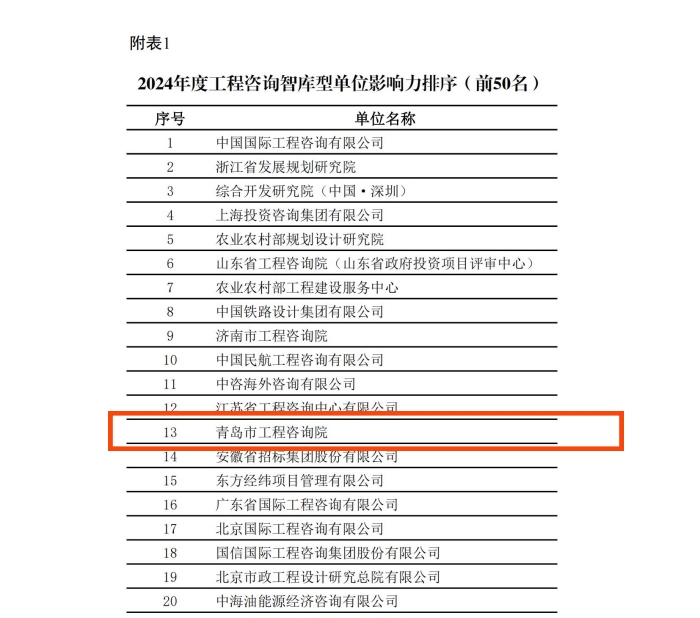 中国工程咨询机构排行榜受到了业界的广泛关注,对进一步推动行业品牌建设、规范行业行为有重要影响,为国际国内工程咨询界提供评价参考。