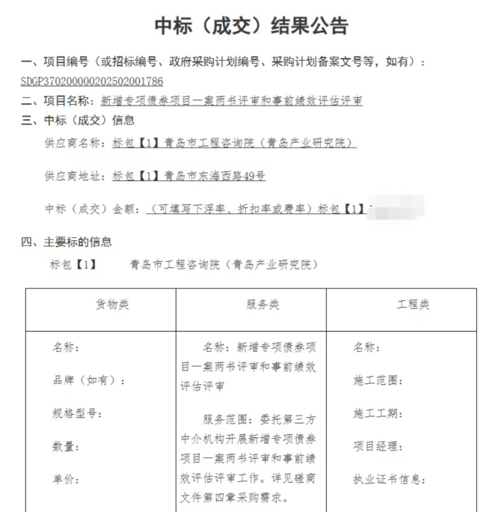 近日,我院顺利中标2026年青岛市新增专项债券项目事前绩效评估评审和“一案两书”评审业务。